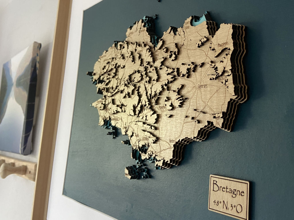 Carte de Bretagne mettant en valeur les topographies terrestre et marine